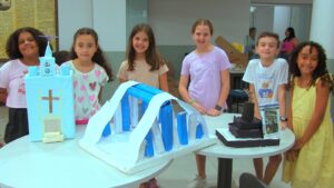 No encerramento das atividades, o gerente de Cultura, Daniel Clemente, conversou com os participantes sobre os patrimônios culturais e bens tombados do município, ressaltando a importância da preservação da história local. Encantadas com o tema, as crianças desenvolveram trabalhos em maquetes, sob a orientação da coordenadora de oficinas da biblioteca, Cláudia Gonçalves, que conduziu a confecção dos modelos representando os bens tombados.