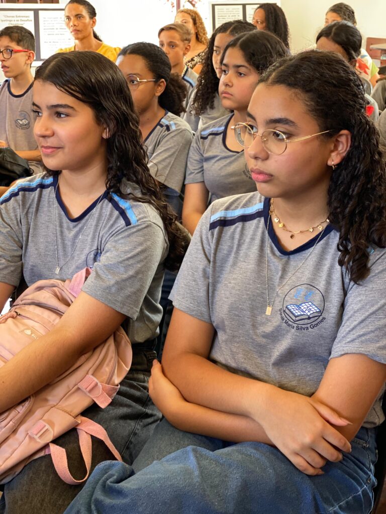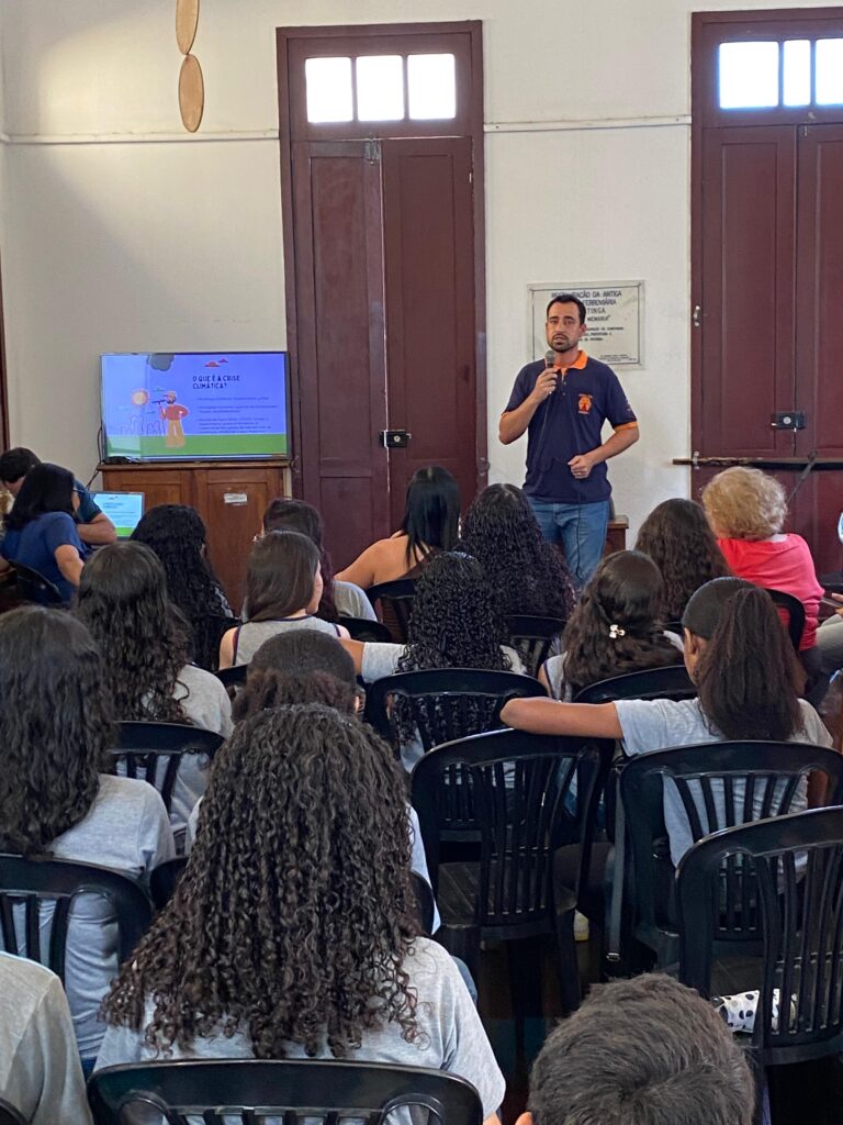 “Mudanças Climáticas e Seus Impactos na Região do Vale do Aço”, conduzida por Hilton da Silva Franco Júnior, engenheiro integrante da Defesa Civil de Ipatinga. Alunos da Escola Estadual Sônia Maria Silva Gomes prestigiaram a programação.