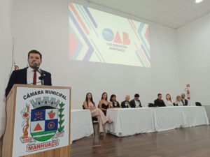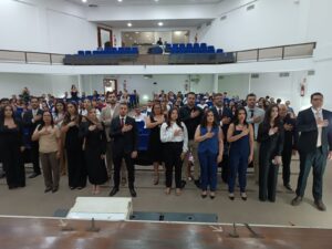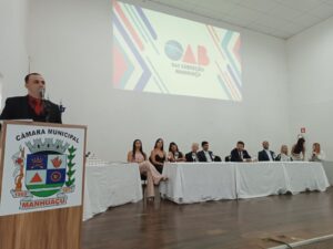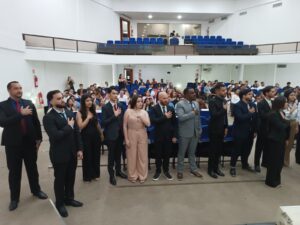 Na noite dessa terça-feira (25), o anfiteatro da Câmara de Vereadores de Manhuaçu foi palco de um momento singular, para a entrega de carteiras para 22 novos advogados, advogadas e oito estagiários inscritos na OAB-MG. A sessão solene foi presidida pelo presidente da 54ª Subseção OAB/ Manhuaçu, Dr. Glauber Vidal, com a participação do vice-presidente, Dr. Arnaldo Cardosos e membros da diretoria, que receberam os novos operadores do direito em um clima de celebração, acolhimento e muita harmonia.