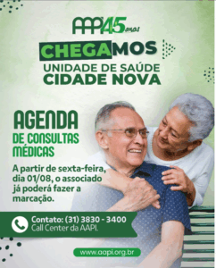 O presidente da Associação dos Aposentados e Pensionistas de Ipatinga – AAPI Joaquim Cândido Ferreira, informou que a nova Unidade de Saúde, em Santana do Paraíso, já inicia os atendimentos à partir desta sexta-feira (1/8). Os associados que desejarem poderão fazer o agendamento apenas por meio de ligação direta junto ao Call Center da AAPI, (31)3830-3400.