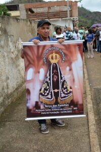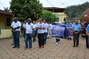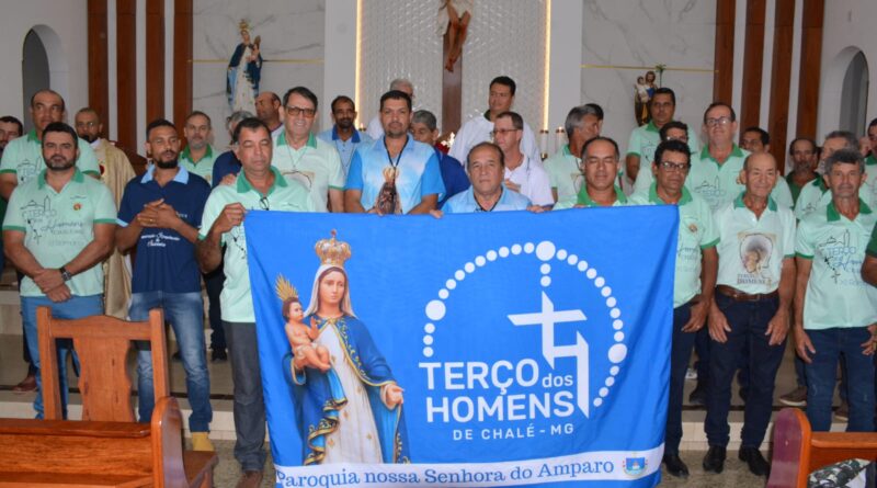 A Paróquia Nossa Senhora do Amparo, de Chalé recebeu neste domingo, 09, participantes de várias cidades, para a comemoração do 12º aniversário do Terço dos Homens. O acolhimento aos visitantes aconteceu na Escola Municipal Manoel Elias de Souza, de onde saíram em caminhada rezando o terço, até a igreja para a Santa Missa, que foi celebrada pelo Padre Malvino Roberto Pires Neto.