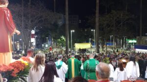 Esse momento foi comemorado, com um show do padre Ezequiel Dal Pozzo. Hoje (domingo,10) será a festa comemorativa ao dia do Padroeiro, iniciando com a procissão às 17h, seguida da Santa Missa, com a participação do Bispo Diocesano, Dom Juarez Dellorto, Após a celebração, show com Anjos de Resgate. (Eduardo Satil)