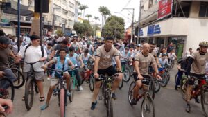 Manhuaçu-O Passeio Ciclístico “A favor da Vida”, promovido pelo 11º Batalhão da Polícia Militar trouxe para as ruas, na manhã deste domingo, 24, mais de 4 mil pessoas, que ocuparam toda a área central da cidade. Bicicletas de diversos modelos desfilaram pelas ruas, além de pessoas de todas as idades deram um colorido a mais, com muita disposição, entusiasmo e o sorriso contagiante.