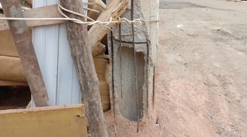 Ha bastante tempo, os moradores da Rua José Ribeiro Sobrinho, no bairro São Vicente estão convidando com muito medo, depois da estrutura de um poste de concreto circular (Oco) ter sido atingida por um veículo. A base de sustentação de um lado, está sendo sustentada somente pelas vigas de ferro.
