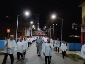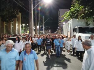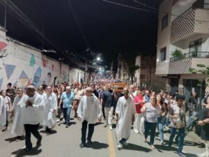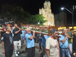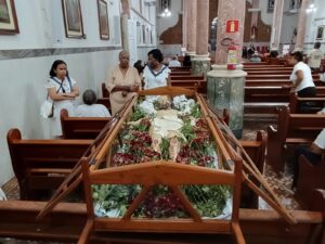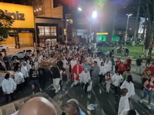 Pelas ruas da cidade, em oração e fé, os fieis acompanharam fervorosos a Procissão do Senhor Morto. Oportunidade para os católicos viverem publicamente a fé e se unirem em oração, relembrando a doação de Jesus pela humanidade. Ao retornarem à Matriz, todos puderam pegar um ramo sobre o corpo de Jesus Cristo, pois se trata de um costume popular de devoção. Esses ramos, benzidos pelo toque na imagem, são levados para casa como símbolos de proteção, perfumando e abençoando o lar.